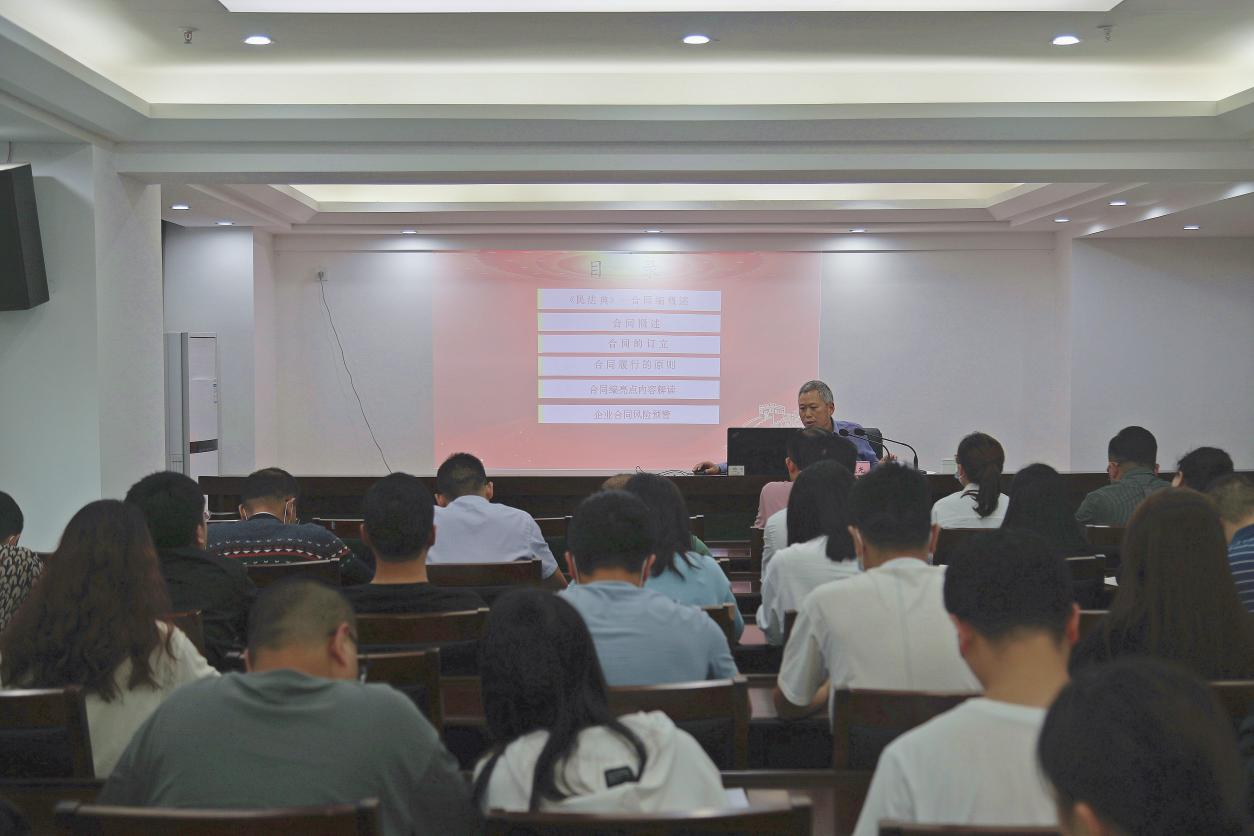 為做好企業(yè)普法宣傳工作,廣泛開展法律進(jìn)企業(yè)法制宣傳教育活動(dòng),培養(yǎng)員工學(xué)法、懂法、用法法治思維,2022年5月25日下午,巴中發(fā)展控股集團(tuán)舉辦了法律培訓(xùn),特邀請(qǐng)巴中市律師協(xié)會(huì)會(huì)長(zhǎng)、四川砝鼎律師事務(wù)所主任朱曉光作專題培訓(xùn)。集團(tuán)總部員工,下屬企業(yè)風(fēng)控負(fù)責(zé)人、法務(wù)、業(yè)務(wù)工作人員共計(jì)50余人參加本次培訓(xùn)。培訓(xùn)會(huì)議指出,現(xiàn)今契約文化的重要性不言而喻,合同是保障企業(yè)權(quán)利的命脈,要推動(dòng)企業(yè)法律工作向管理型轉(zhuǎn)變,由事后救濟(jì)型向事前防范、事中控制型轉(zhuǎn)變,努力做好風(fēng)險(xiǎn)防控。