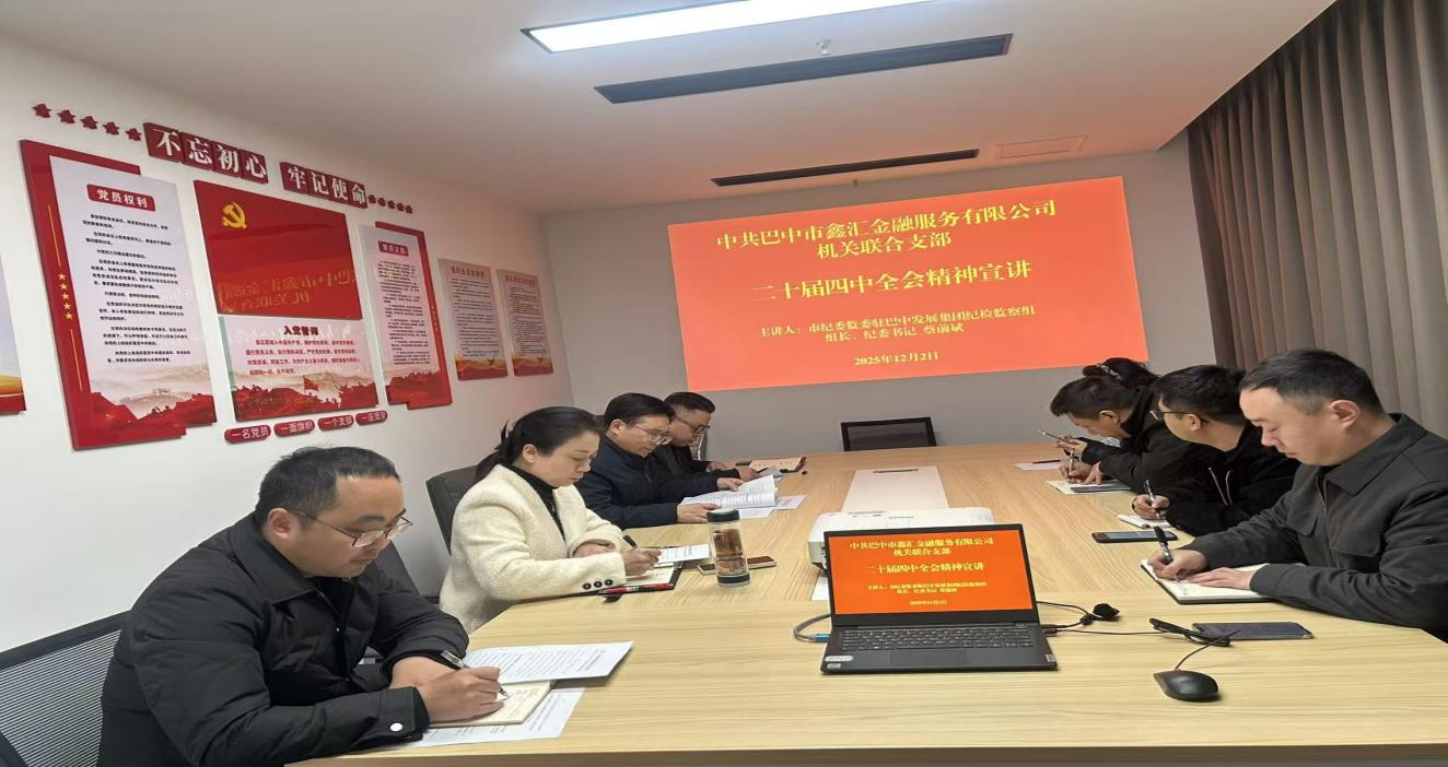 為深入學(xué)習(xí)宣傳貫徹黨的二十屆四中全會(huì)精神,推動(dòng)理論指導(dǎo)與實(shí)踐融合,12月2日,市紀(jì)委監(jiān)委駐巴中發(fā)展集團(tuán)紀(jì)檢監(jiān)察組組長、集團(tuán)紀(jì)委書記蔡前斌到金服公司機(jī)關(guān)聯(lián)合支部專題宣講黨的二十屆四中全會(huì)精神,并就下一步工作提出指導(dǎo)意見。