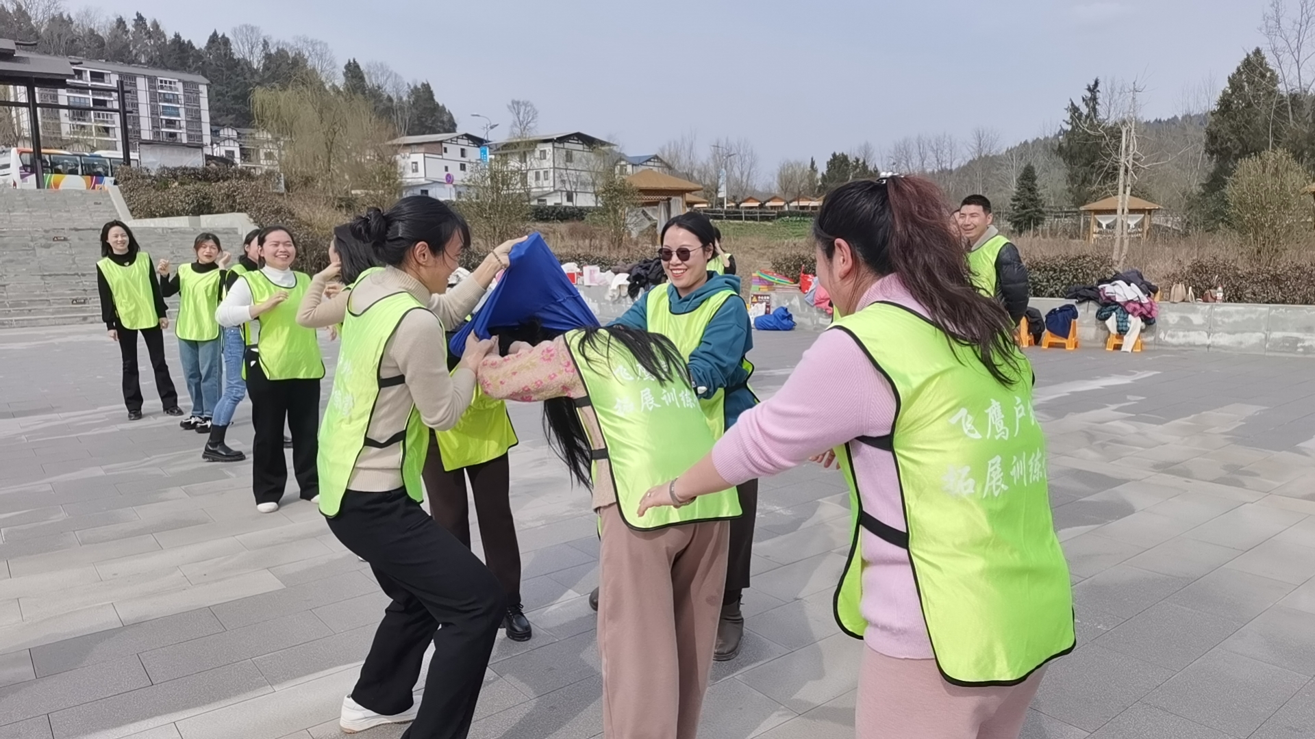 下午,女職工們在駟馬水鄉(xiāng)碼頭廣場開展了團建活動?;顒娱_始前,教官按照報數(shù)的順序,將全體參與人員隨機分成了紅、黃、綠3個隊,隊員們通過進行輪流交換揉肩、捶背等放松活動打破隔閡、消除尷尬,營造了歡快活潑的團隊氛圍。