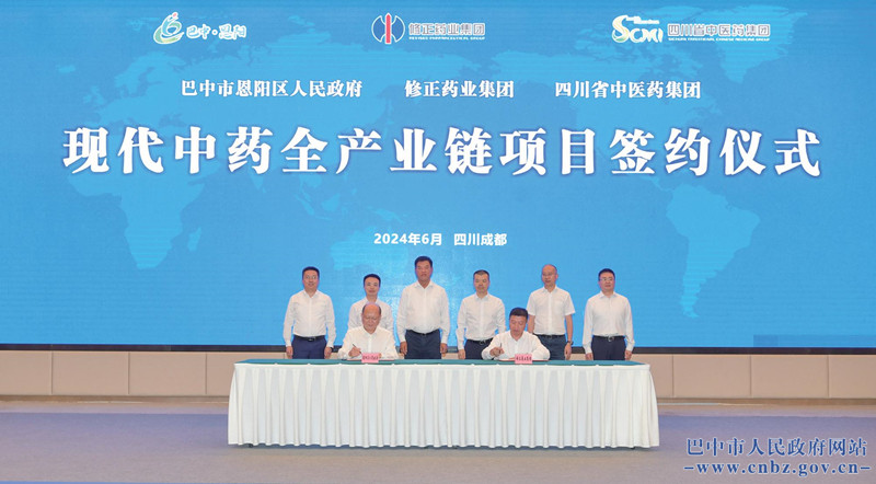 在成都分會場,舉行了現(xiàn)代中藥全產(chǎn)業(yè)鏈項目簽約儀式,巴中市恩陽區(qū)人民政府分別與修正藥業(yè)集團、四川省中醫(yī)藥大健康產(chǎn)業(yè)投資集團簽訂合作協(xié)議?,F(xiàn)代中藥全產(chǎn)業(yè)鏈項目總投資4.2億元,包括建設(shè)中藥材種植基地、中藥材加工生產(chǎn)線、中藥材展示交易中心、中藥和大健康產(chǎn)品制造等內(nèi)容。